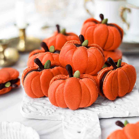 After finishing off our leftover pumpkin pie, we're still fending for some pumpkin treats! To satisfy our craving, these sweet, crispy, and chewy Pumpkin Macarons with Dark Chocolate Ganache hit the spot. These adorable little morsels of goodness are made with Suncore Foods® Cosmos Red Cabbage, Red Beet, Yellow Goldenberry Powders, filled with a rich, dark chocolate ganache filling. The ultimate treat for all ages and pairs wonderfully with a cup of tea or hot chocolate. We are completely embracing this pumpkin fever and never want to let go!
