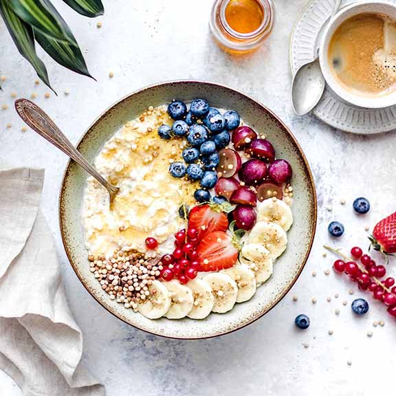 - 1 cup of water for 1/2 cup of Suncore Foods® Snow Quinoa Flakes: