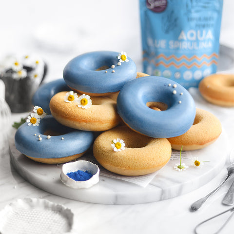 How can we say no to donuts? Especially when they're coated with blue spirulina chocolate icing!? We think these might be the most delicate looking donuts ever, achieved the heavenly blues with our Suncore Foods® Aqua Blue Spirulina Powder! Give a go at making these dazzling treats at home, one won't be enough when it comes to these donuts!