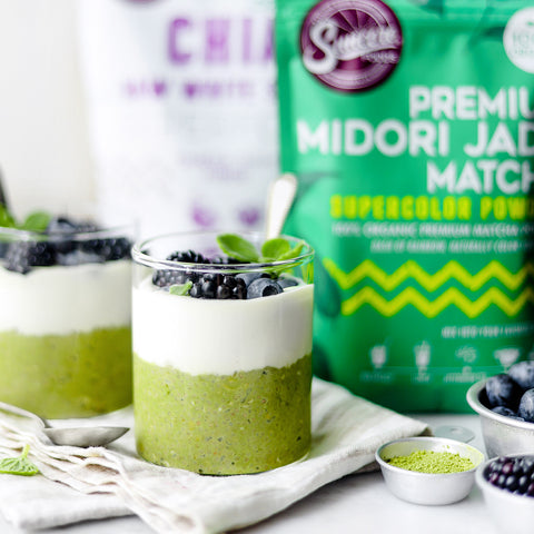 With unlimited combinations, Overnight Oats have become an essential part of our week! These are so simple and easy to make, yet they never get boring. With so many options to chose from, we think you should give these Creamy Coconut Matcha Chia Seeds Overnight Oats a try We love how our Suncore Foods® White Chia Seeds and Suncore Foods® Midori Jade Matcha Powder are added to create the magnificent fulfilling green bas. You can always rely on overnight oats to get you through the day, and to spruce it up, add your favorite toppings!