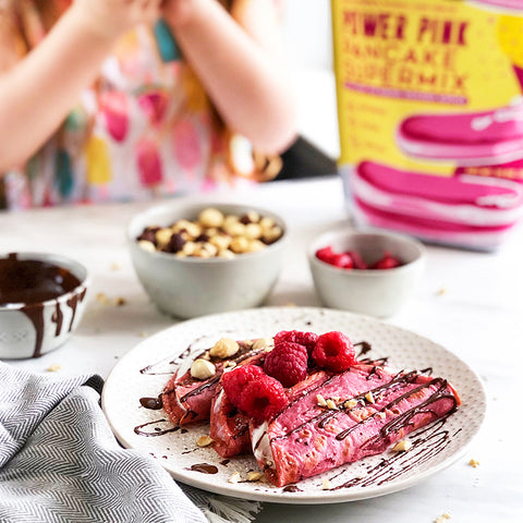 Have you ever had pancake tacos? This unexpected combo is our newest obsession! Made these fabulous pink tacos using Suncore Foods® Power Pink Pitaya Pancake & Waffle Powder Mix, it's a great and unique way to add some fun to your family mornings. Dress these up with any toppings you like and create a breakfast that is unlike any other!