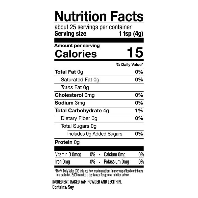 INGREDIENTS: Baked Sweet Potato Yam Powder.